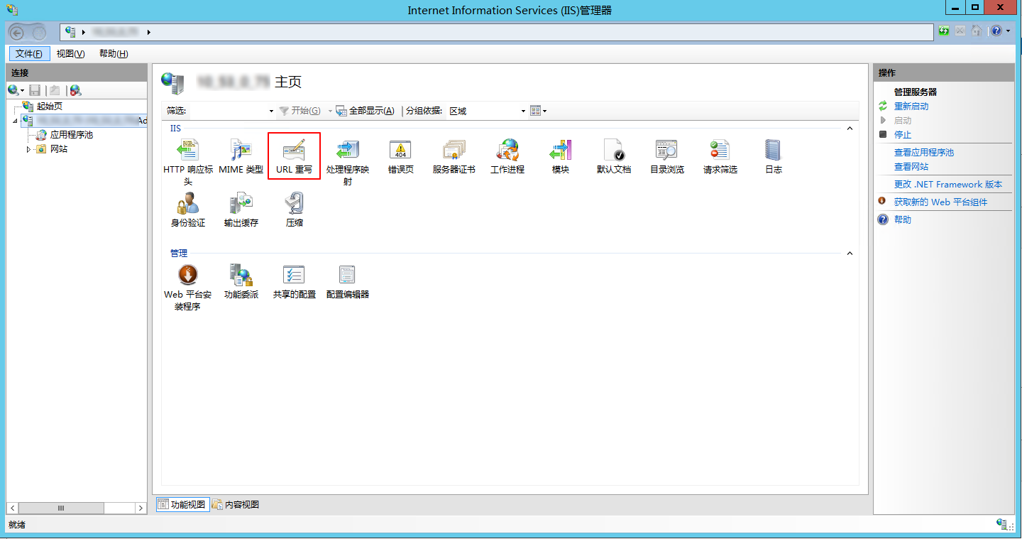 选择网站下的站点名称,双击打开 “URL 重写”。如下图所示: