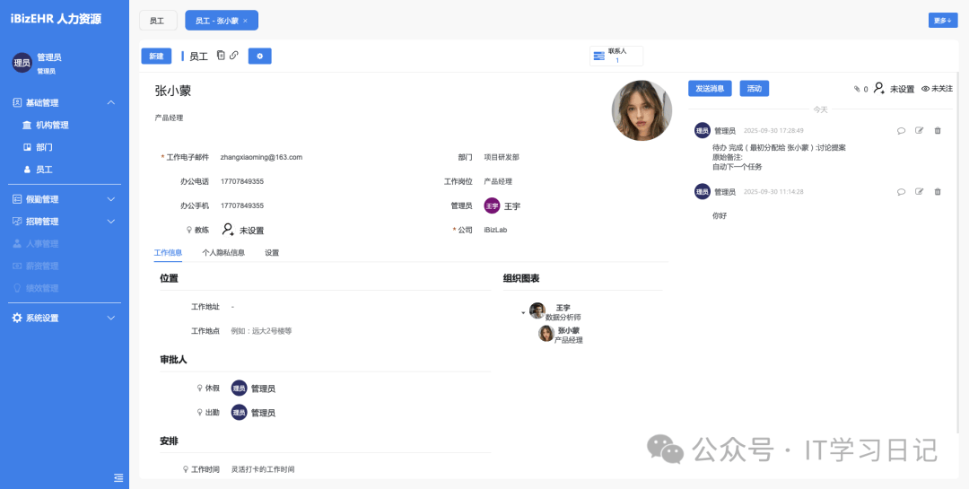 [点晴永久免费OA]一款开源免费的人力资源管理系统,支持招聘、人事、薪资、绩效全方位管理