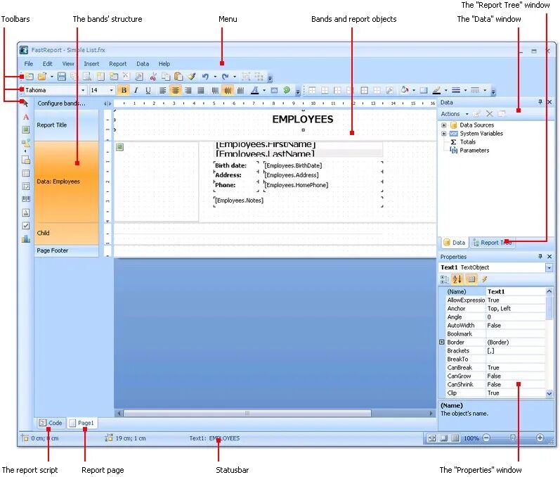 public void ExportToPdf(DataTable employeeData, string filePath) { using Report report = new Report(); report.RegisterData(employeeData, "Employees"); report.Load("Templates/EmployeeReport.frx"); report.Prepare();