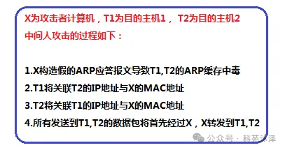 这种攻击方式不仅对计算机有效,还可以扩展到路由器与网关设备,从而在路由器与主机之间使用中间人攻击。 广播攻击如果以太网帧的目的地址为 拒绝服务攻击(DOS)通过更新ARP缓存表,插入一条 会话劫持连接劫持(会话劫持)是一种类似中间人攻击的方法,当两台计算机相互连接时,中间人通过ARP欺骗,完成连接劫持。连接劫持一个简单例子是连接劫持者控制一个远程主机登录连接之后,开始进入远程主机,获取相关资料。 3. ARP欺骗预防