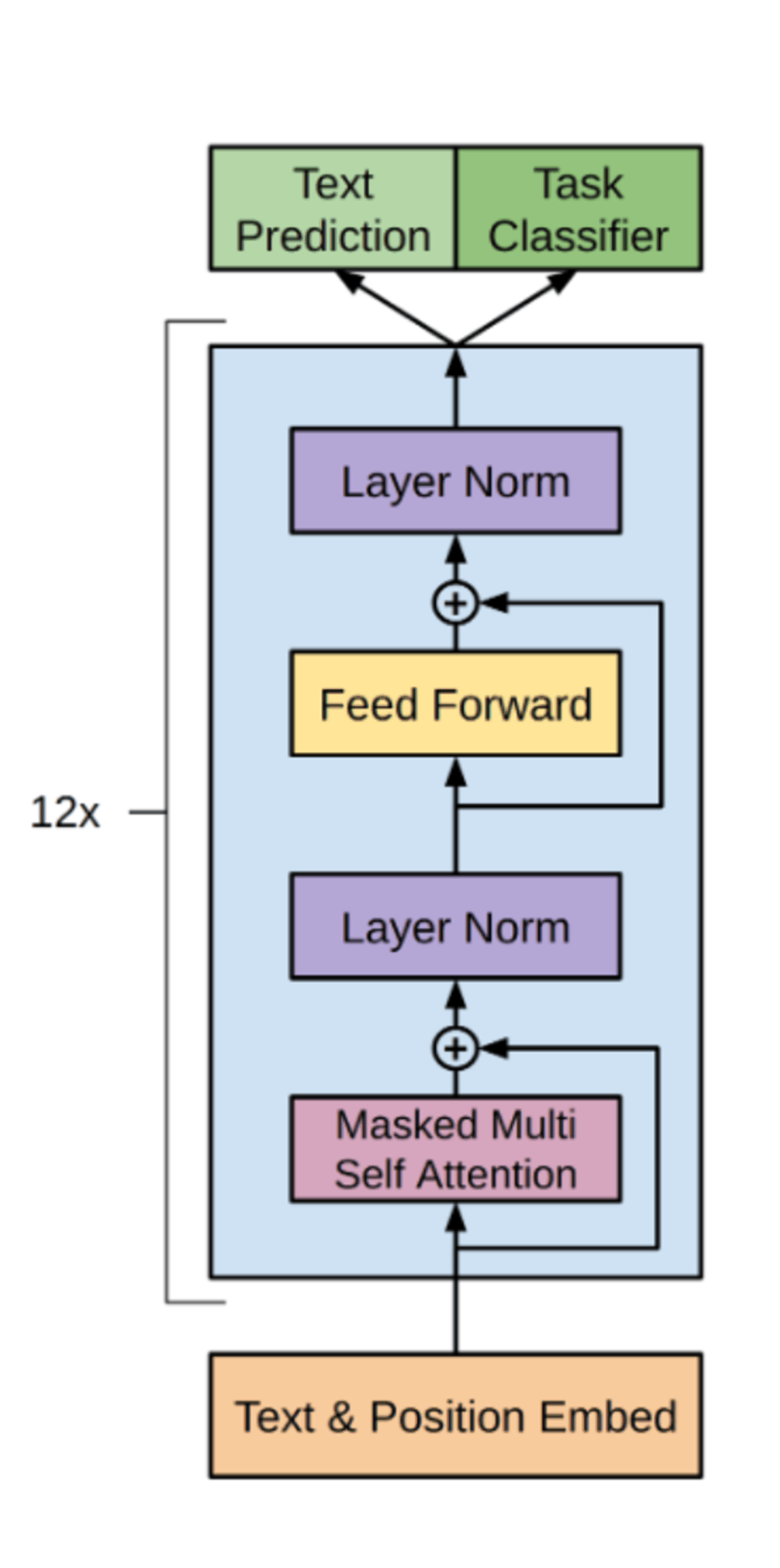 这四个矩阵加起来的参数量*96(96个头)等于57.98B约占总参数量(175B)的33%。 Add& NormAdd 是残差链接(Residual Connection):这里是为了缓解梯度消失/爆炸、信息保真(子层学不到东西时,模型可以退变差化为恒等映射,性能不会)、收敛更快。可以注意的点是,这里的计算过程不仅用了自注意计算的向量,还用了token的原始向量。 Norm 是层归一化(Layer Normalization):稳定激活分布(把每个token按均值0、方差1归一化,防止层与层之间数值飘逸) Feed Forward详细的逻辑图如下: