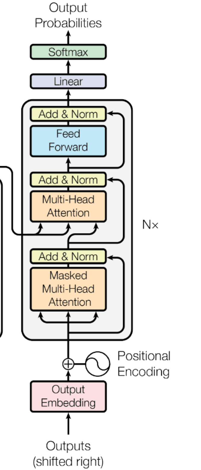 解码器结构其实和编码器结构很相似。不同点,在于: