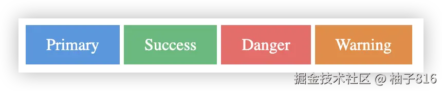 <style> .button { color: white; padding: 10px 20px; display: inline-block; background: if(style(--btn-type:primary): #4299e1; style(--btn-type: success): #48bb78; style(--btn-type: danger): #f56565; style(--btn-type: warning): #ed8936; else: #2d3748); } </style> <div class="button" style="--btn-type: primary">Primary</div> <div class="button" style="--btn-type: success">Success</div> <div class="button" style="--btn-type: danger">Danger</div> <div class="button" style="--btn-type: warning">Warning</div> 效果如下: