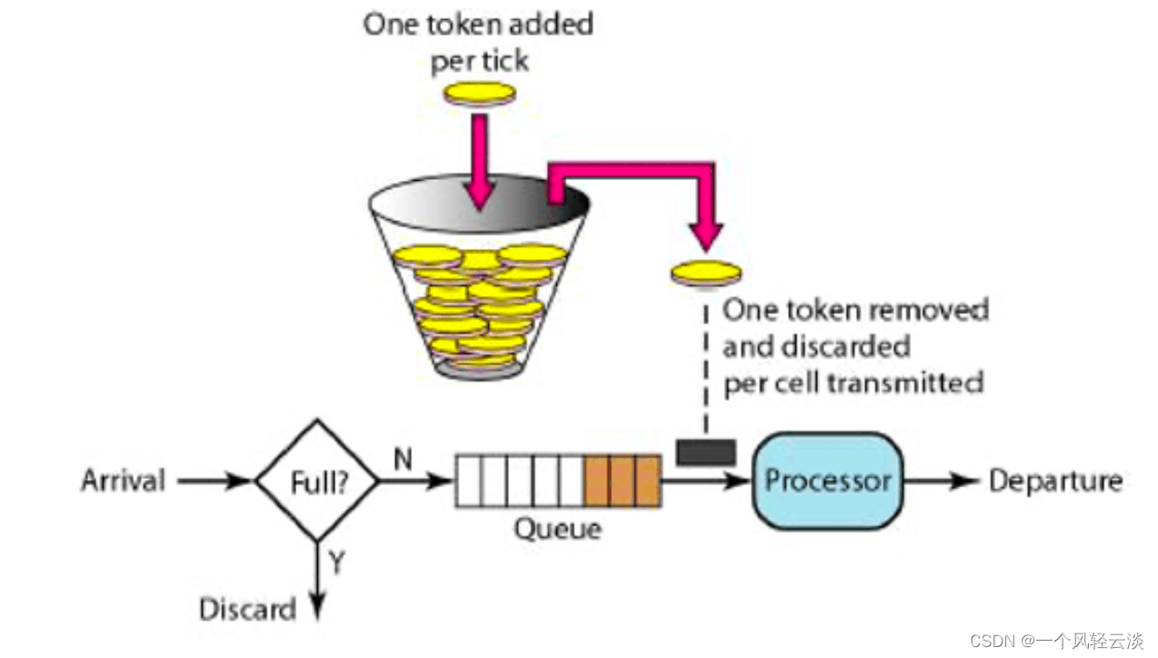 原理: 令牌桶算法NGINX采用了令牌桶算法进行带宽控制。使用一张经典的图偏来描述令牌桶算法:
