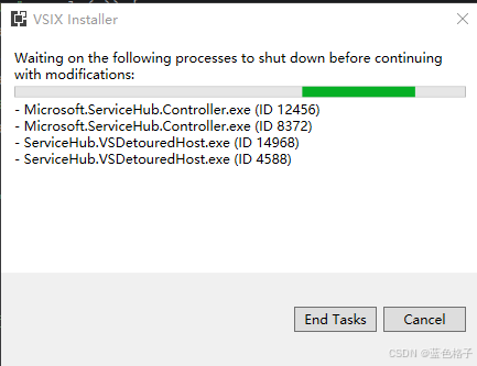 等安装完成后,关闭VS,等待更新完成。 ![]() 当出现以下框时,选择End Tasks ![]() 等待安装完成 ![]() 安装完成,重新打开项目 ![]() 完成后,重新打开项目,选中要升级的项目,鼠标右键,选中升级,选中就地升级项目(升级前最好先将本地的引用截图保存,后面升级后进行比较,将缺少的依赖再引用)
