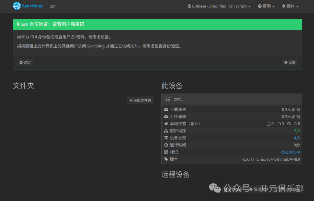 调整后,检查 Syncthing 是否恢复正常: