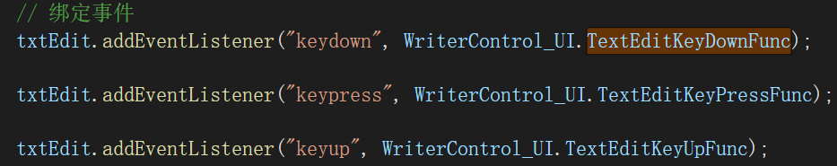 这个成员函数完整模拟了核心模块所依赖的标准System.Windows.Forms.Control的成员。 在代码中使用了很多Blazor WASM标准库中不存在的类型,比如Color、Rectange、Cursor、KeyEventArgs、KeyPressEventArgs、MouseEventArgs、PaintEventArgs之类的,都需要我们扩散定义。 然后我们跟着定义周边的类型,比如ScrollableControl、UserControl之类的。由于我们的DCWriter编辑器控件是派生自UserControl,于是一部分DCWriter核心模块形式上开始迁移过来了。 3.1.1.模拟键盘事件WinForm.NET程序是靠重写Control.OnKeyUp/OnKeyPres/OnKeyDown虚函数来实现键盘事件。事件参数类型是 System.Windows.Forms.KeyEventArgs/KeyPressEventArgs。 首先定义一个鼠标事件转发器。其代码如下: