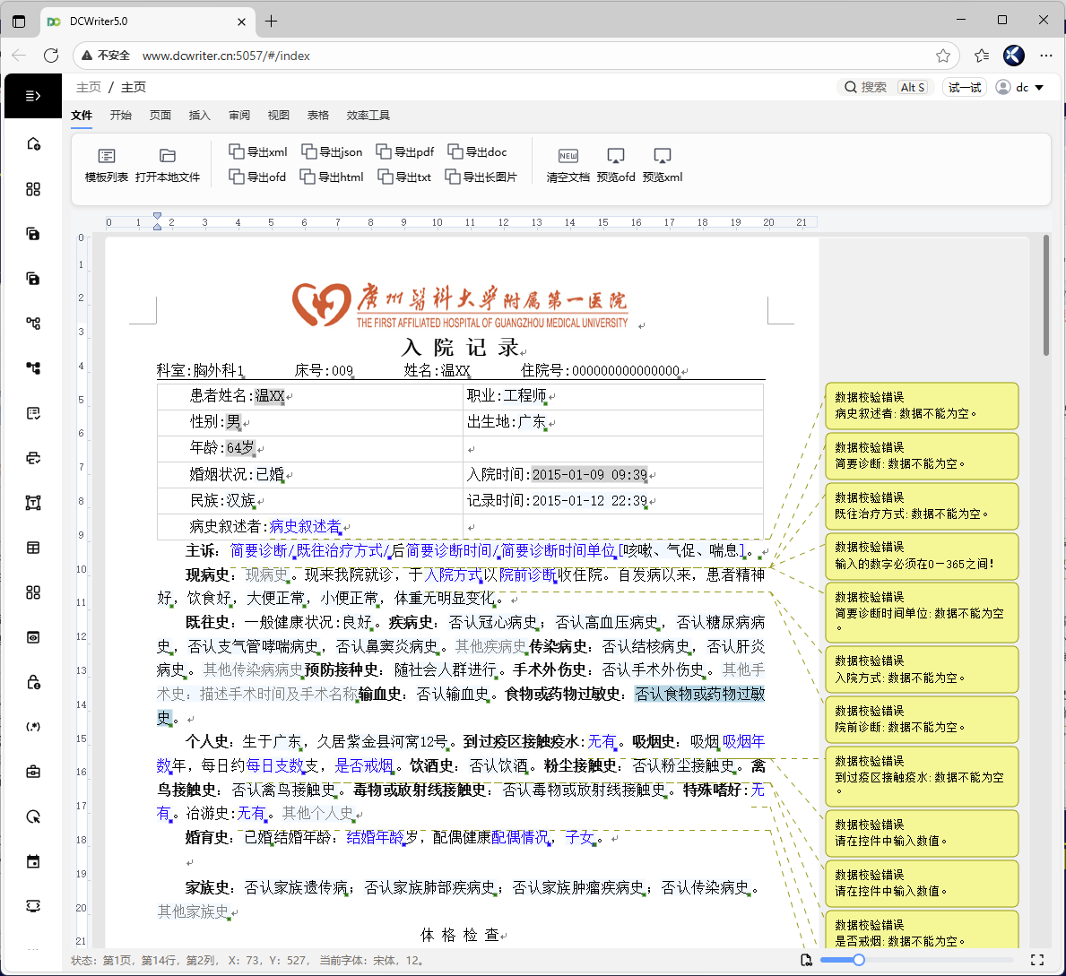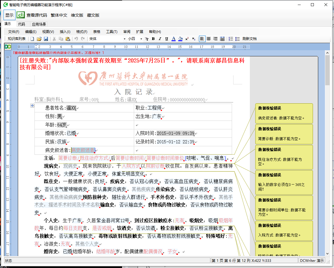 在这个函数中,程序首先获得int16数据,这是画笔对象编号,从this.PenTable中获得画笔对象。然后使用DrawLine函数来绘制线段。这里调用了4次ReaderInt32(),这是获取线段的坐标信息,也就是x1,y1,x2,y2。 这样,我们就能将C#端Graphis.DrawLine()转换为JS端的canvas.drawLine(),实现了在一个HTMLCanvasElement上绘制图形。 至此,我们就模拟出System.Drawing.Graphics类型。 4.大变活JS借助我们开发的【结界.NET】(https://github.com/dcsoft-yyf/JIEJIE.NET)进行程序集混淆加密,使用【BlazorWASMPackager】(https://github.com/dcsoft-yyf/BlazorWASMPackager)将Blazor WASM的编译结果打包成一个独立运行的JS文件。这样我们一顿操作猛如虎,将原先的WinForm.NET的EXE文件转变为一个15MB的JS文件,面对BS架构和信创,变得更加的根正苗红,无懈可击了。 5. 最终效果经过上述操作,我们成功的将DCWriter编辑器的WinForm.NET版本迁移到Blazor WASM平台上,实现了一个纯前端的符合信创的编辑器组件。有兴趣可以看看演示页面(http://www.dcwriter.cn:5040/#/index),一个文档在WinForm.NET版本的显示如下图所示: