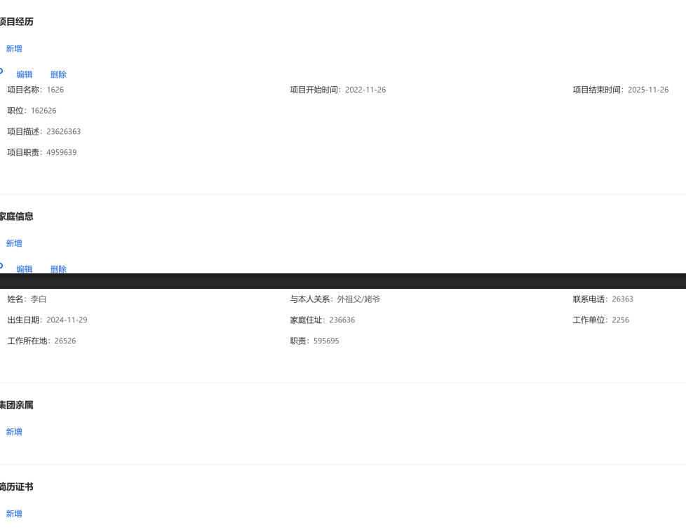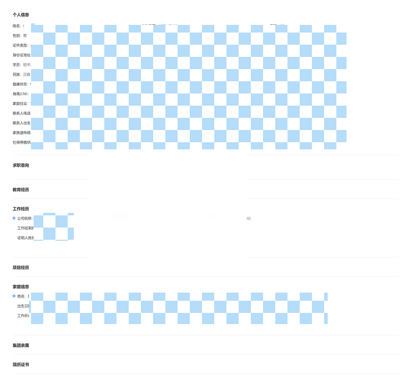 在之前的招聘系统中,有一个信息展示页,其中包含了候选人的详细信息,是通过前端渲染字段来进行展示。信息量比较大,在页面的局部容器中滚动,并且支持编辑、删除等操作。为了便于候选人信息的存档和分享,我们需要实现将这些信息导出为PDF的功能。导出方案对比