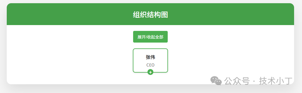 在企业管理系统或团队协作平台中,组织结构图是一种重要的可视化工具,能够清晰地展示公司的层级关系和人员分布。本文将详细介绍如何使用 HTML、CSS 和 JavaScript 从零开始构建一个具有交互功能的组织结构图。效果演示