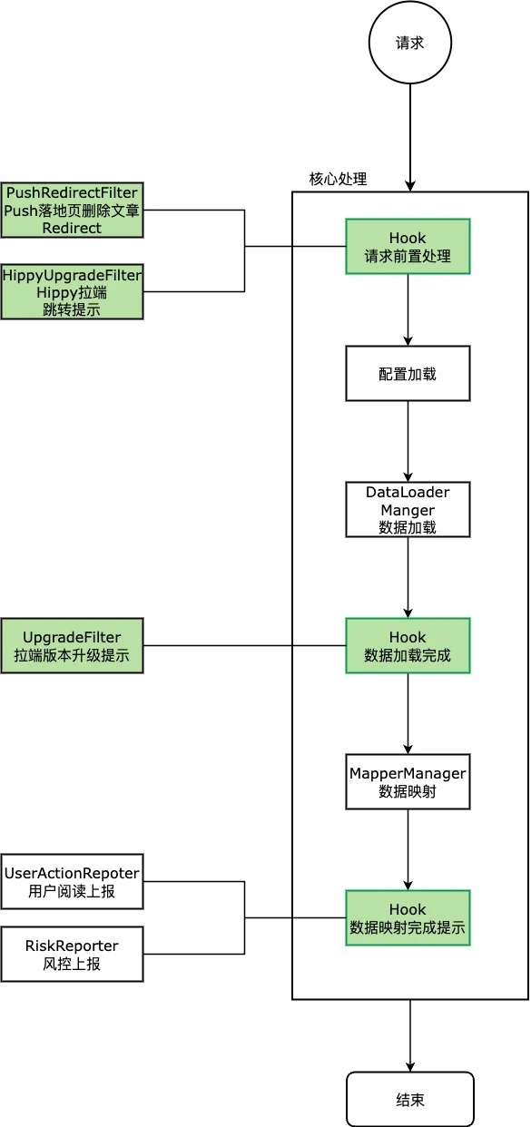 请求流程增加 Hook 机制:
