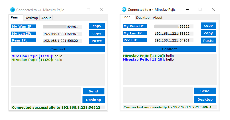 - The 2 peers have now the 2 endpoint to connect to, so press on both