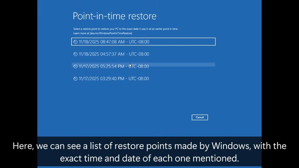 微软最新开发的功能名为时间点还原,该功能与系统还原功能类似但不清楚是全新开发的还是复用了系统还原的某些功能,目前从演示来看与系统现有的还原功能非常相似。