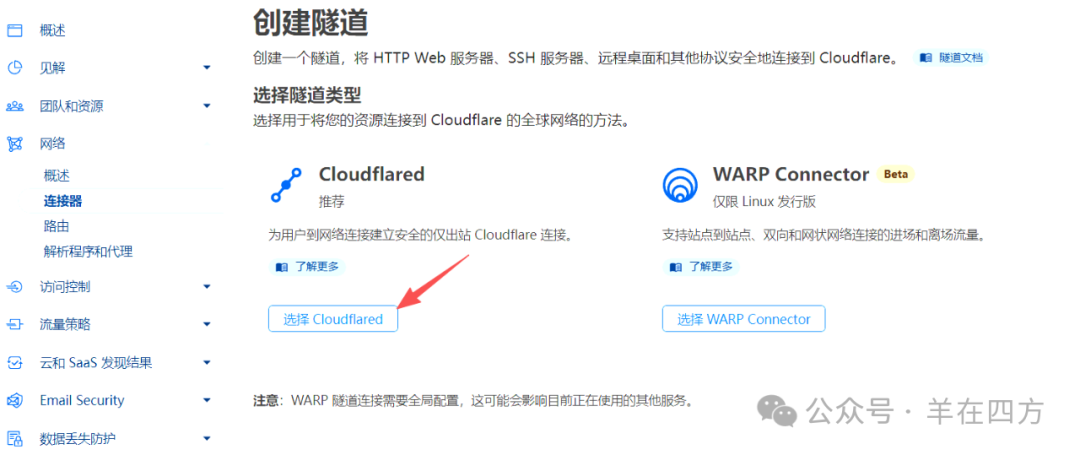 对比优势:为何它是个人用户的“赛博活佛”? 结合上表的痛点,Cloudflare Tunnel 的优势一目了然: 彻底免公网IP:仅需设备能访问外网即可,解决了绝大多数家庭宽带用户的根本难题。 极致安全:服务器隐身,所有流量经 Cloudflare 网络加密中转,并天然集成DDoS防护和Web应用防火墙(WAF)。 真正的免费与高性能:免费套餐功能已非常完整,且能利用 Cloudflare 全球CDN网络进行智能路由加速,访问体验优异。 易于分享与管理:可轻松绑定自定义域名,通过 Cloudflare Zero Trust 策略灵活控制访问权限(例如,要求输入特定邮箱的一次性密码才能访问),实现安全可控的分享。 配置日益简化:早期需命令行配置,但现在可通过 Zero Trust 仪表板图形化操作,“仅需三步” 即可完成隧道创建、客户端安装和路由配置,对新手极度友好。 实战指南:为你的飞牛NAS部署Cloudflare Tunnel 下面,我们以在飞牛NAS上部署为例,拆解核心步骤。 前期准备 1. 拥有一个域名(如我的 `172508.xyz`)。 2. 将域名的DNS解析服务器修改为 Cloudflare 提供的DNS地址,即域名由 Cloudflare 托管。 3. 在 Cloudflare 面板中,进入 Zero Trust 模块(有免费计划可用)。 4. 如果没有外网支付方式,可在添加付款方式那步点取消,再返回,Tunnel已经创建好了。 核心三步曲 第一步:创建隧道 在 Zero Trust 面板的 “Access” -> “Tunnels” 中,点击 “Create a Tunnel”。 为隧道命名,任意名字、支持中文,然后点击保存。