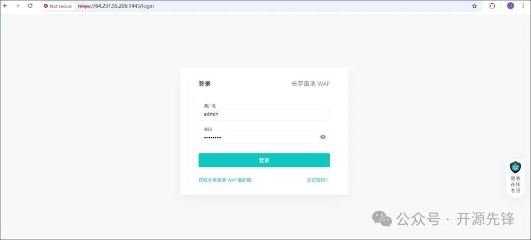 项目体验展示为了体验防护效果,开源君在本地搭建了一个web站,同时用3000端口直连应用(无 WAF) ,8888端口通过 SafeLine 代理(有 WAF)。 所有攻击请求完全一致,唯一的区别只是,请求是否经过 WAF。 场景1:绕过登录,直接拿到管理员权限这是最经典的一个场景。 在 3000 端口上,登录框几乎就是“裸奔状态”。开源君随手在用户名里塞了一段常见的 SQL 注入语句,密码随便填,点一下登录——页面直接跳转成功,右上角赫然显示着