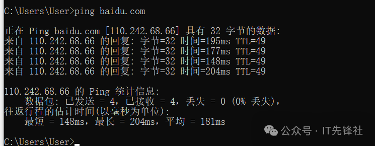 4、执行需要抓包的操作,如在cmd窗口下执行ping www.baidu.com。