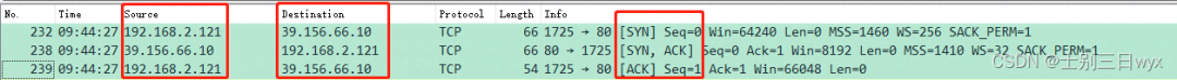 - 1. 第一个包是「第一次握手」:我(192.168.2.121)向百度(39.156.66.10)发送一个 SYN ,表示这是一个「建立连接的请求」