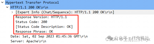 2)再看HTTP响应包,找到HyperText Transfer Protocol这一栏,也就是HTTP的报文