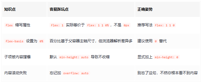 所以写 flex: 1 1 0 更明确,不容易出错,建议全团队都统一用这个写法 ✅。