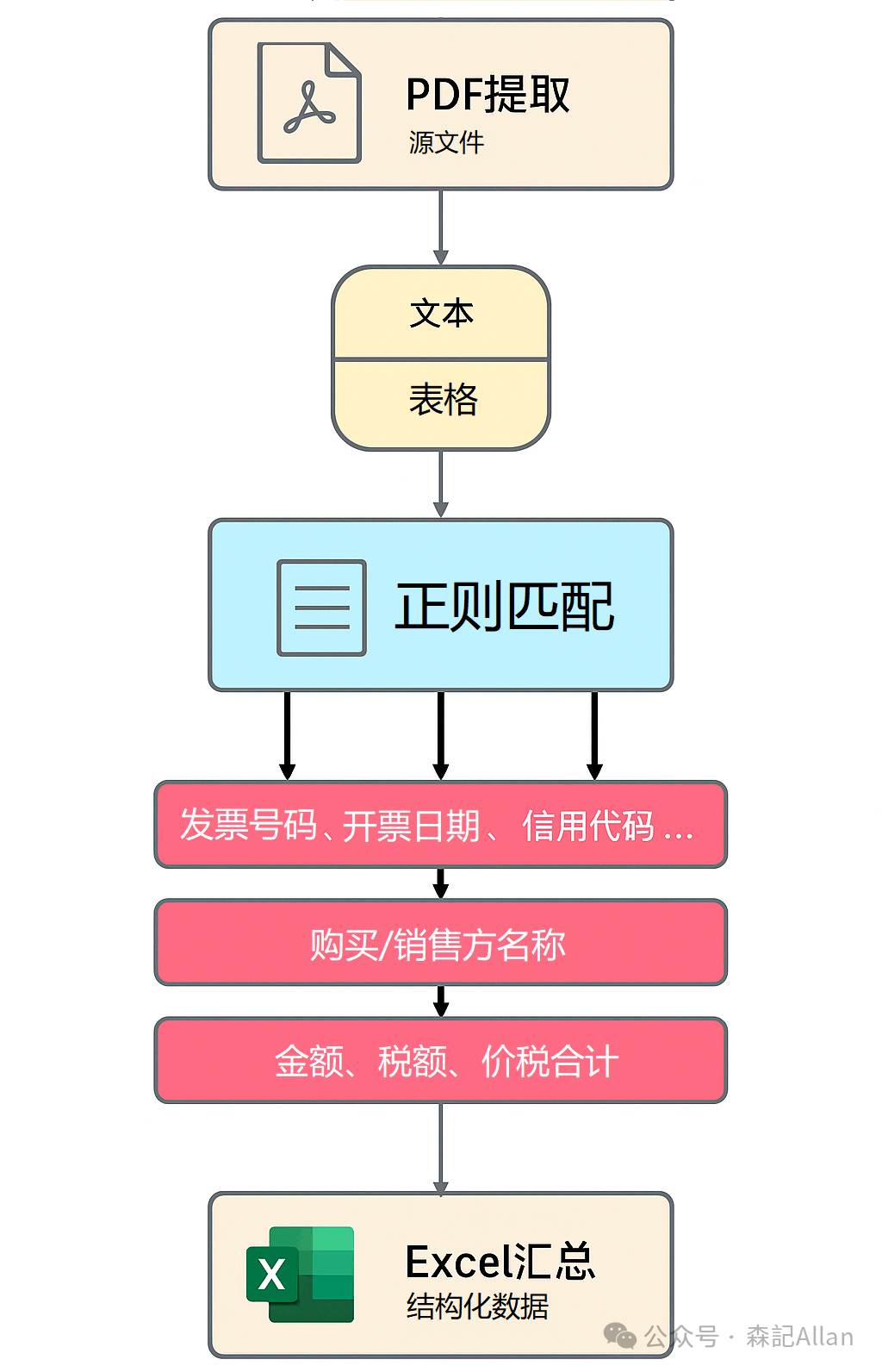 在不少做财务、运营、采购的一线同事眼中,电子普票PDF是一堆“不得不处理”的文件:要查金额、对税号、核往来、做台账,手工一张张打开、复制、粘贴,不仅枯燥,还容易出错。其实,这些重复劳动完全可以交给电脑来干。本文带你一步步看懂一段用 Python 写的“小工具”代码:自动遍历文件夹里的电子普票PDF,识别发票关键信息,并一键导出成Excel,尽量用通俗的方式,帮你看懂“它是怎么做的”,而不是只给你一堆代码。