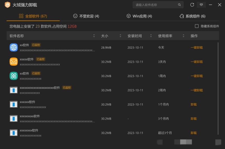 安装监控这招,太狠了重点来了:实时监控软件安装全程行为。 什么意思?你装个软件,它偷偷往系统里塞了什么文件、改了哪些注册表、后台藏了啥进程。。。火绒全程盯着,给你记得清清楚楚。 等你要卸载时,直接按照监控记录精准清除,连根毛都不留。 这功能在国外收费软件里都得充钱才能用,火绒直接免费给你。再配合“内置规则库+非行为记录”双重扫描,残留文件、冗余数据统统清理干净。 卸载效果和GeekUninstaller付费版打平,但人家要钱,火绒不要。 你说气不气人? 两种模式,随你挑“普通卸载”和“一键卸载”双模式覆盖不同场景: