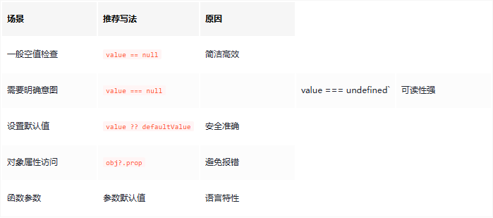 优势:只对 null 和 undefined 生效,不会误判0、false等其他值。