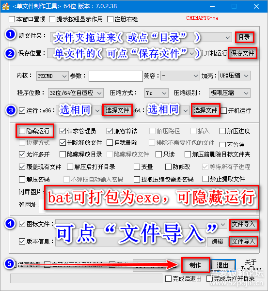 —可传递参数,内置参数、外置参数均支持,这是其它单文件制作程序无法达到的高度;