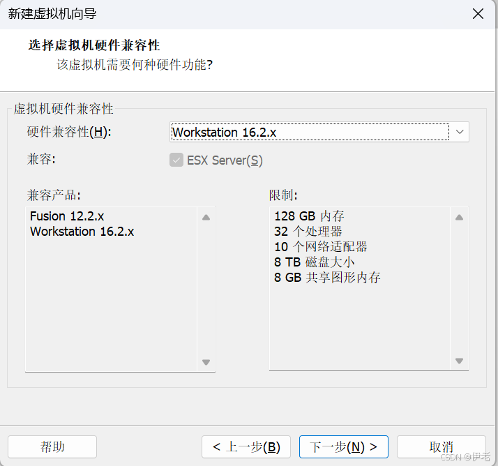 1.3 选择虚拟机硬件兼容性