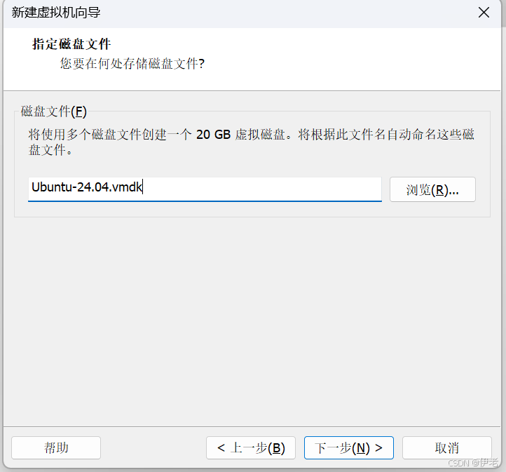 输入「虚拟机名称」(如 Ubuntu-24.04)→ 选择存储位置(非系统盘,如 G:\Virtual Machines)→ 下一步;