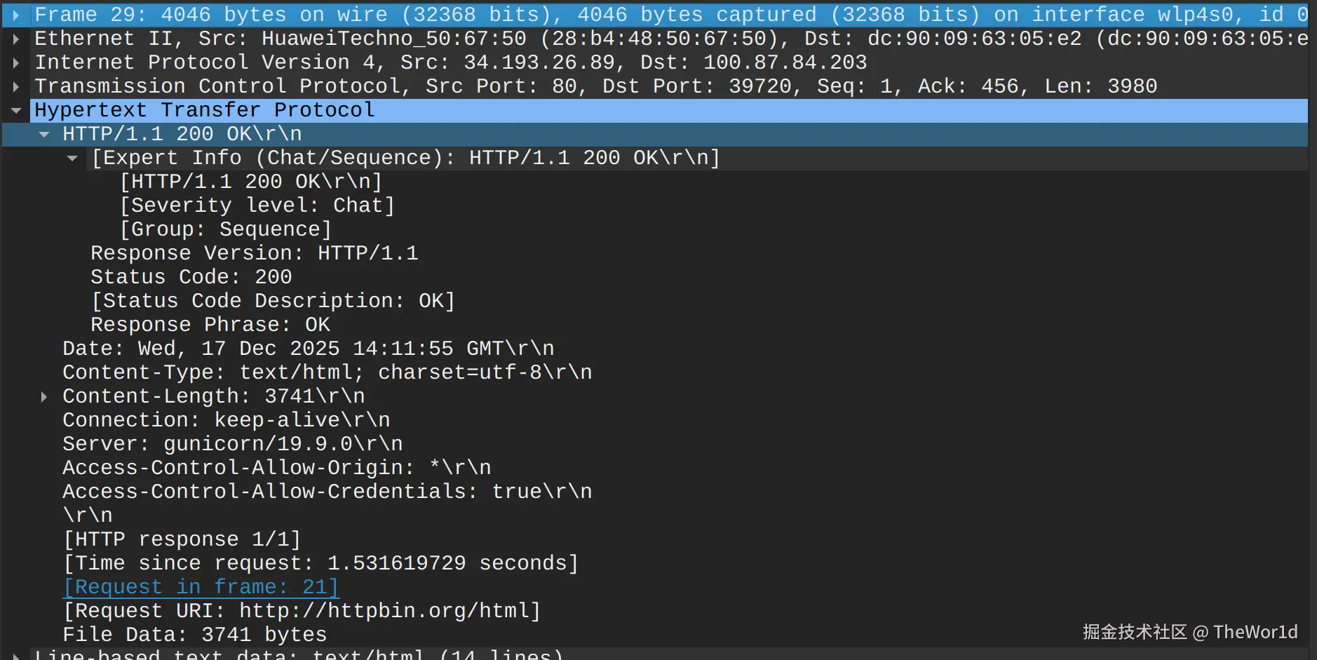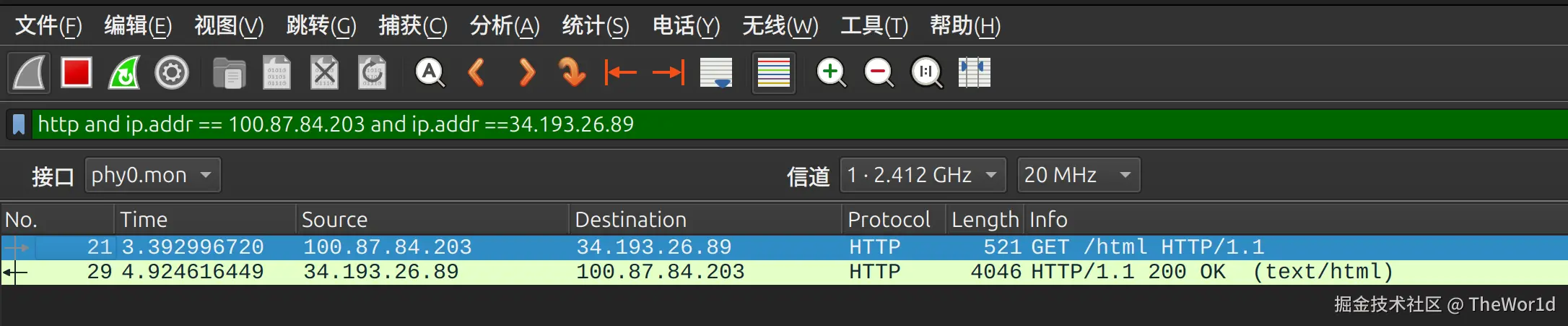 http://httpbin.org/html - 停止抓包,过滤: http and ip.addr == httpbin.org 的ip地址 and ip.addr == 你主机ip地址