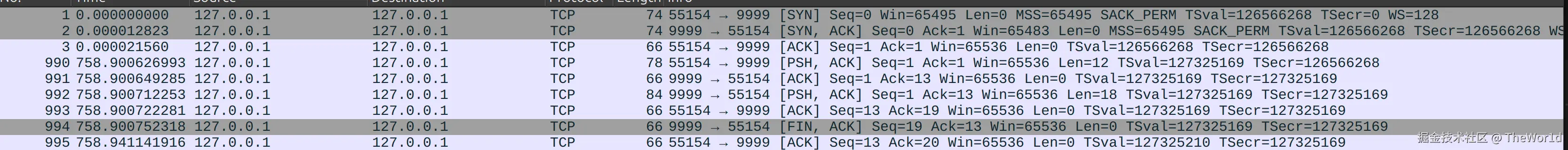 lo(环回) - 过滤器: tcp.port == 9999
