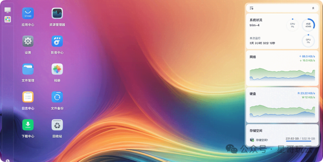 4. 飞牛NAS(fnOS)核心特点:国产开源NAS系统,界面设计类似macOS,视觉体验好;支持Docker容器和AI相册功能,硬件兼容性强,可利用旧电脑改造;功能兼顾易用性和扩展性,适合国内用户习惯。 适用场景:家庭影音存储、个人办公备份、旧设备改造复用。 优缺点:优势是界面友好、国产适配性好、硬件兼容性强;缺点是生态处于早期阶段,高级功能待完善,社区支持较弱。