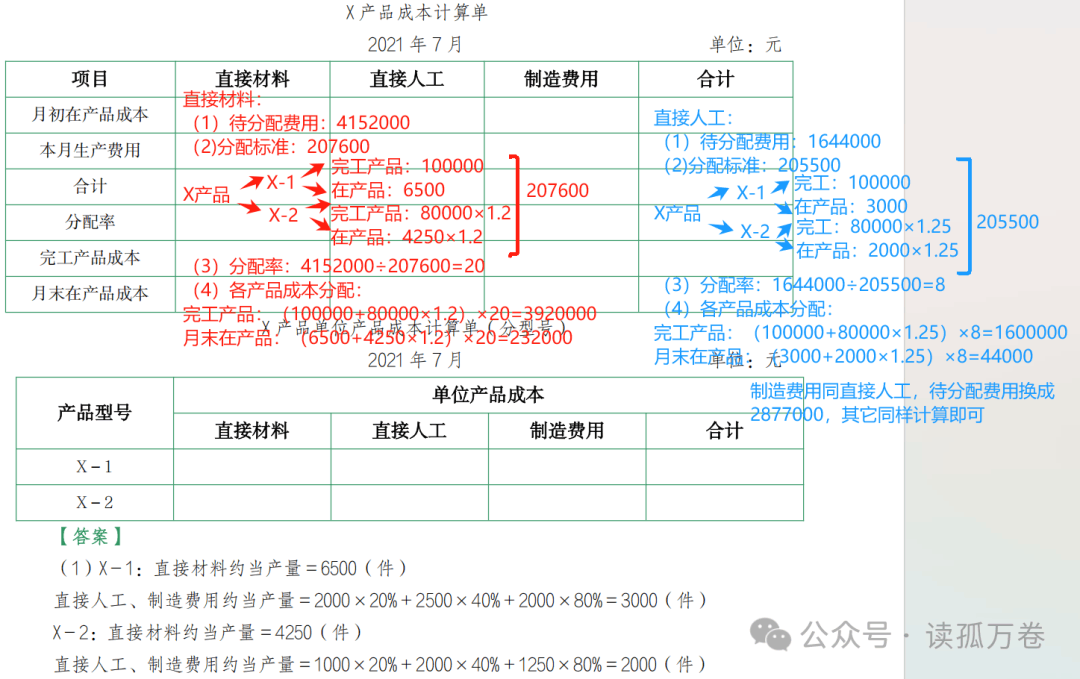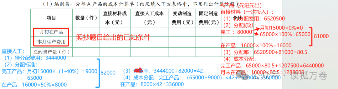 分批法:看批号、看工期、不分配(通常)。 三、四步法解题