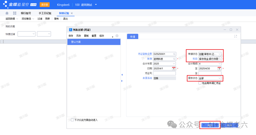 2.登账设置:按核算维度的设置,注意登账设置的日期为凭证日期: