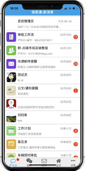 ![]() 无此机制,这需要服务器上有一个后台程序长期不断轮询所有未结案的工作流,对于OA服务器会产生比较大的压力,点晴OA系统后台程序未提供此服务。 如果需要在审核后提醒通知下一步审核、知会或归档的相关人员,可以购买使用点晴MIS信息通手机APP(含微信、企业微信、钉钉版)、PC客户端,点晴MIS信息通介绍网址:http://im.clicksun.cn,在工作流新流程申请后或审核人审核完毕后,点晴MIS系统会自动发送提醒信息到下一步节点(审核、知会、归档等)的相关人员手机或PC电脑上,相关人员可以立即在手机或电脑上直接点击进行查看和审核、归档等操作。即使忘记了当时立即操作,也可以事后随时点击进行相应操作,无需再次发送提醒信息。
