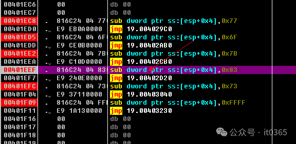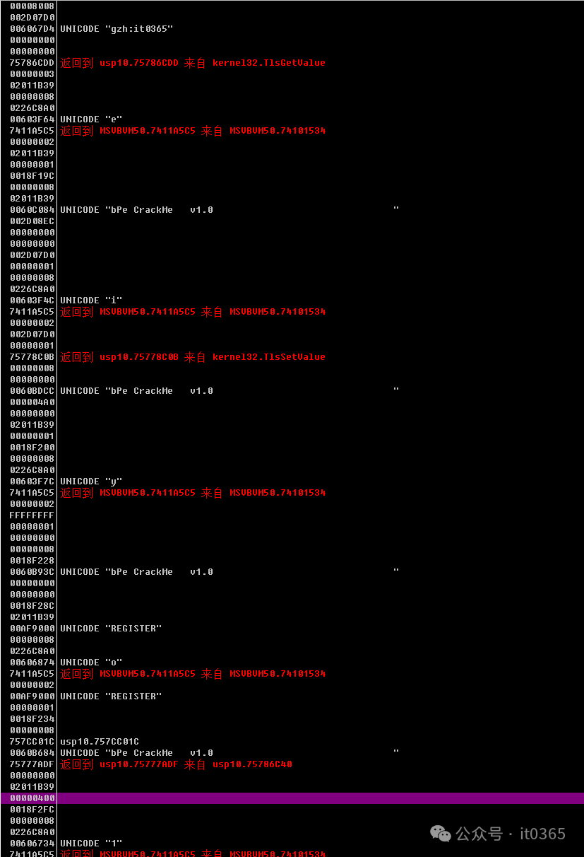 将搜索到的地址全下好断点后,输入假的注册码GZH:IT0365,点击按钮看软件会断在哪个位置: