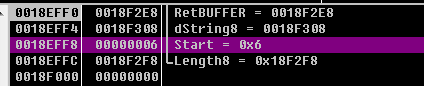 看到堆栈中的内容,猜测它应该是读取到了内容并返回了所在位置。上面字符中第6位开始就是R。继续往下走,它会重复取值操作。