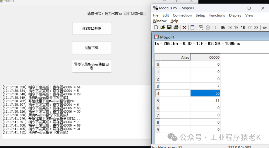 这个示例完全复刻了实际工控项目的开发思路,你只要替换 PLC IP、寄存器地址和数据解析逻辑,就能直接用到现场项目中。