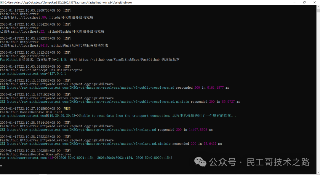 启动:FastGithub:D:\FastGithub.exe start