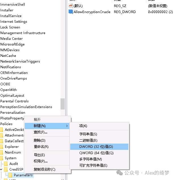 Windows家庭版无组策略功能,可通过修改注册表实现相同效果,步骤如下:按下「Win+R」输入 regedit回车,打开注册表编辑器(操作前建议备份注册表,避免误改);导航至目标路径: HKEY_LOCAL_MACHINE\Software\Microsoft\Windows\CurrentVersion\Policies\System若路径中无CredSSP项,右键System→新建→项,命名为CredSSP右键"CredSSP"→"新建"→"项",命名为"Parameters"右键"Parameters"→"新建"→"DWORD(32)位值",命名为"AllowEncryptionOracle"双击该值,基数选择「十进制」,数值数据填写「2」(2代表“易受攻击”模式,临时兼容旧策略);关闭注册表编辑器,无需重启电脑,直接尝试远程连接即可。「快捷操作」:管理员身份运行PowerShell或CMD命令提示符,复制以下命令回车,一键完成注册表配置:REG ADD "HKLM\Software\Microsoft\Windows\CurrentVersion\Policies\System\CredSSP\Parameters" /v AllowEncryptionOracle /t REG_DWORD /d 2 /f