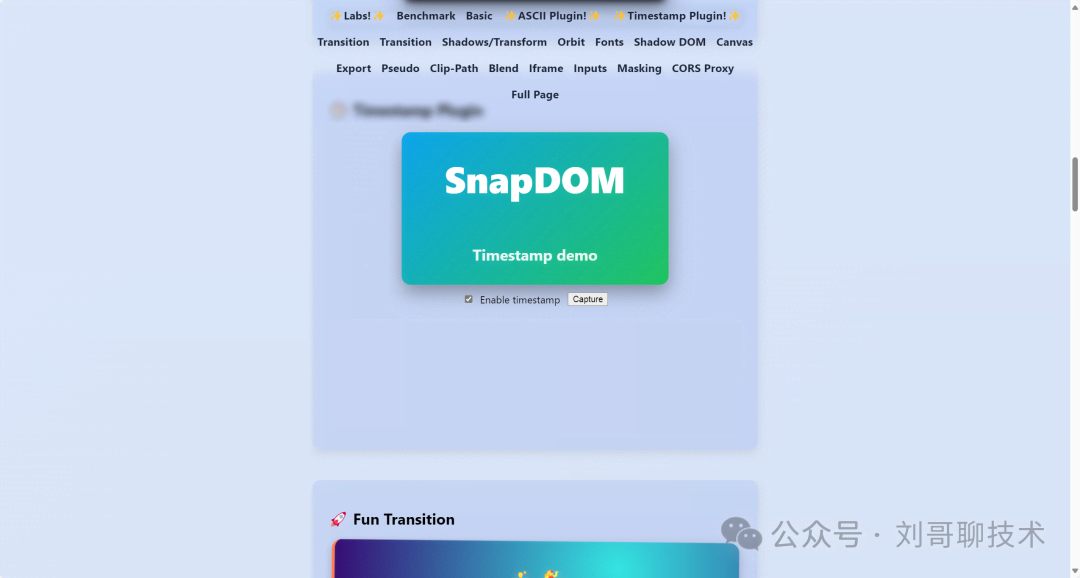 SnapDOM 完全基于标准的 Web API 构建,不需要任何外部依赖。它使用现代的 JavaScript 特性,支持 ES Module 导入,也可以通过 CDN 直接在浏览器中使用。
