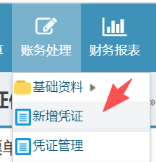 :ERP新增凭证如何操作![]() 操作步骤:财务处理-新增凭证