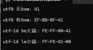 | UTF-16 BE(大端) | FE FF | 2字节 | 表示高位字节在前 |