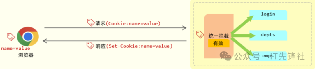 是因为 cookie 它是 HTP 协议当中所支持的技术,而各大浏览器厂商都支持了这一标准。在 HTTP协议官方给我们提供了一个响应头和请求头:响应头 set-Cookie :设置cookie数据的;请求头 Cookie:携带cookie数据的。
