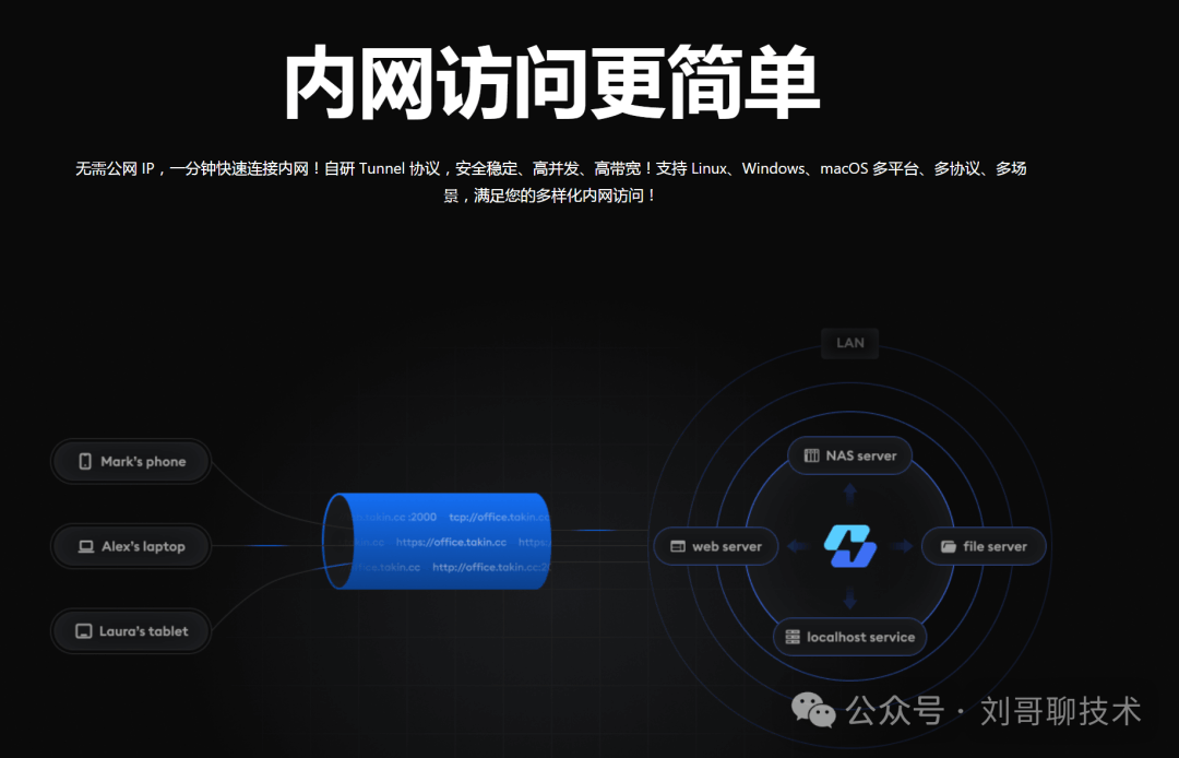 个人与家庭应用远程访问家中的 NAS 私有云盘、路由器管理界面、家庭监控摄像头或智能家居控制面板。将运行在树莓派或 Linux 等个人设备上的博客、网站映射到公网,以极低成本实现服务公开。