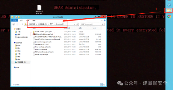 勒索病毒处置实验目的掌握针对勒索病毒的判断、识别、处置方法 实验环境一台Windows server 2012r2 已经中了勒索病毒 实验原理识别勒索病毒,有些勒索病毒因为程序编写漏洞或开发者放弃,可以找到解密密钥。进行解密 实验步骤一、观察勒索病毒登录系统,发现桌面背景提示