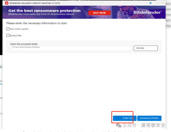 下载软件 这里有很多不同版本的解密工具,为避免下载问题,实验环境中已经内置好解密工具。学员也可以自行尝试下载不同工具,尝试解密。 打开文件夹C:\USERS\download2\ 双击运行软件BDGandCrabDecryptTool