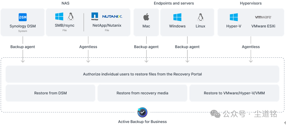 在上一篇内容中,为大家介绍了群晖Drive套件,它以高效的文件同步与协作能力,满足了个人及中小企业数据管理需求。而对于对数据安全性、服务连续性要求更高的企业用户来说,仅靠文件同步还远远不够。今天,我们就来介绍两款专为企业级场景设计的套件--Synology High Availability(HA双机热备)与Active Backup for Business(ABB整机集中备份)。 ![]() Synology High Availability:双机热备方案 对于企业核心业务而言,服务中断哪怕是几分钟,都可能造成不可估量的损失。群晖HA双机热备套件,正是为解决这一需求的高可用方案。 其核心逻辑是将两台配置完全一致的群晖设备组成一个主备集群,其中主服务器负责对外提供所有服务,备用服务器则处于实时同步状态--不仅同步主服务器的全部数据,还会同步系统设置、服务配置等所有关键信息。两台设备除了唯一的SN序列号外,在功能、配置、对外呈现上完全一致,实现了“无缝衔接”。 当主服务器因突发故障而无法正常服务时,备用服务器会瞬时接替主服务器,继续对外提供服务。整个切换过程几乎无感知,最大限度降低服务中断对业务的影响。 需要注意的是,该方案的核心前提是“两台完全一致的群晖设备”,这也使得它在所有群晖备份方案中,实际硬件成本最高。因此,它更适用于对服务连续性要求极高的企业核心场景。 Active Backup for Business:一站式整机集中备份工具 如果说HA双机热备主打“高可用”,那么Active Backup for Business(简称ABB)则聚焦“全场景集中备份”。作为群晖推出的企业级集中式备份软件,它凭借单一管理界面、多设备覆盖、高效存储与灵活还原等优势,成为企业备份体系的核心工具。 ✦核心优势:一站式管控,简化备份流程 ABB最大的亮点的是单一图形化管理入口,管理员无需切换多个工具,即可在一个界面内完成对群晖DSM系统、个人计算机、物理服务器、文件服务器以及虚拟化平台的所有备份任务配置、监控与管理。 ✦全面覆盖:多设备、多协议、多平台支持 ABB的兼容性极强,几乎覆盖了企业常见的所有IT设备与平台: • 整机备份与完整还原项目:群晖DSM系统、Windows系统(含Windows Server)、Linux系统(含CentOS、RHEL、Ubuntu、Fedora、Debian等主流发行版); • 文件服务器备份:支持Rsync协议、SMB协议,同时兼容NetApp、Nutanix等专业存储设备; • 虚拟化平台备份:全面支持VMware ESXi与微软Hyper-V两大主流虚拟化平台。 注意:所备份的系统版本有最低版本限制要求,可参阅官网软件要求和限制说明!!! ✦灵活备份:按需定制备份频率 ABB针对不同设备类型,提供了精细化的备份频率设置,可按需匹配企业业务需求,如整机备份(含DSM、Windows、Linux)与虚机备份,按小时、按天、按周为单位配置备份计划;文件服务器备份:支持按天、按周为单位配置备份计划。 ✦高效存储:增量备份+全局重删,降低成本 企业备份数据量往往庞大,若采用全量备份,不仅耗时久,还会占用大量存储资源。ABB借助增量备份技术,仅备份每次变化的数据,大幅缩短备份时间;同时搭配全局重删技术,删除整个备份体系中的重复数据,有效减少存储容量占用,为企业节约硬件存储成本。 需要注意的是,ABB套件有一个硬性要求——必须运行在Btrfs文件系统上,因此在部署前需确保群晖设备已格式化为该文件系统。 ✦灵活还原:多场景快速恢复,缩短恢复时间 备份的最终目的是“可恢复”,ABB提供了多细粒度、多场景的还原方式,能快速恢复数据与服务,大幅缩短恢复的时间;Windows、Linux整机备份后,支持还原到裸实体设备(需要制作专用的U盘启动盘);物理服务器支持还原到VMware vSphere、Microsoft Hyper-v以及群晖自己的Virtual Machine Manager(VMM);VMware虚拟化平台支持异机还原,适配更多恢复场景。 启动盘的制作可根据官方文档操作。