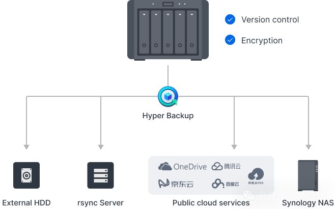 •   跨设备备份:另一台群晖设备(适合异地备份、设备冗余);