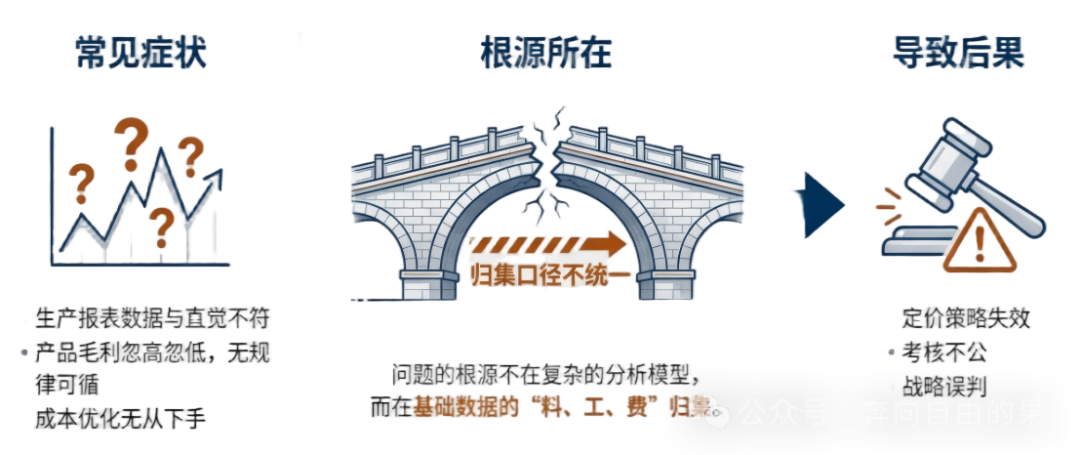有的时候你是否经常会觉得你们公司的成本数据就像一团迷雾,生产报表中的数字似乎总是和实际感觉对不上,分析产品毛利率的时候忽高忽低,总是找不到稳定的规律,并且想要优化成本的时候却不知道该怎么下手。这些问题的一些根源往往不在于复杂的分析模型,而是在于最基础的一环,就是料、工、费的归集。我们许多企业的成本分析,就像建立在流沙上的一座城堡,正是因为料工费的归集口径非常混乱,并且归属不清,核算也不准。